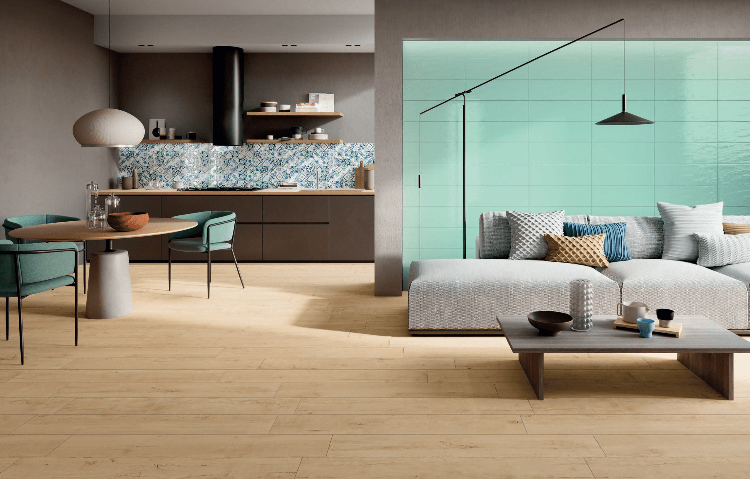 Le carrelage Chalet Cirmolo restitue fidèlement l’aspect du bois naturel clair, avec un rendu chaleureux et authentique. Son effet bois doux et lumineux crée des ambiances apaisantes, idéales pour des intérieurs confortables et contemporains. Résistant et facile à entretenir, il convient parfaitement à un usage quotidien.